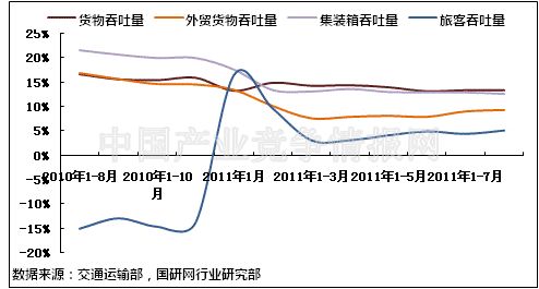 2011年8月份世界各国经济复苏步伐继续放缓,我国经济增速也相对平稳,使得我国港口运行情况表现较为平稳,规模以上港口的主要指标均保持较为稳定的增长。