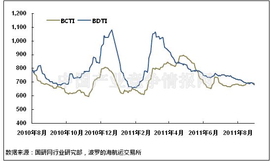 8月份,波罗的海油轮运价指数普遍下跌,成品油运价指数和原油运价指数都出现持续的低迷走势。8月份,波罗的海成品油运价指数(BCTI)和波罗的原油运价指数(BDTI)平均值分别为684.64点和699.23点,BCTI均值比上月上升1.38%,BDTI均值比上月下降5.55%。从月末运价来看,截至8月31日,BCTI报收于688点,较上月底下降0.86%;BDTI报收于679点,较上月底下降9.10%。