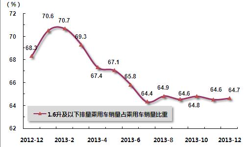 2012年12月-2013年12月小排量乘用车市场份额变化情况图