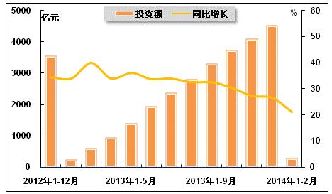 图1 2012年12月-2014年2月医药行业投资额及其增速走势