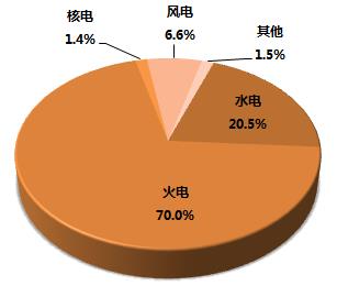 截至2014年7月末,全国6,000千瓦及以上电厂发电装机容量达到125,787万千瓦,同比增长9.5%,保持平稳增长。其中,水电25,749万千瓦,同比增长15.2%,占总装机容量的比重为20.5%,与上年同期相比提高1.0个百分点;火电88,089万千瓦,同比增长5.3%,所占比重为70.0%,与上年同期相比下降2.9个百分点;核电为1,778万千瓦,同比增长21.7%,所占比重为1.4%,与上年同期相比提高0.1个百分点;并网风电8,331万千瓦,同比增长22.0%,所占比重为6.6%,与上年同期相比提高0.8个百分点。