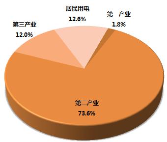 电力消费结构继续优化,第三产业和城乡居民生活用电量占全社会用电量的比重继续提高。国家能源局数据显示,2014年1-7月份,第一产业用电量557亿千瓦时,同比下降2.1%。第二产业用电量23,094亿千瓦时,同比增长4.7%,增速与上年同期相比回落0.7个百分点。第三产业用电量3,754亿千瓦时,同比增长6.5%,增速与上年同期相比回落3.4个百分点。城乡居民生活用电量3,968亿千瓦时,同比增长5.7%,增速与上年同期相比上升0.6个百分点。第一、第二、第三产业及城乡居民生活累计用电量分别占全社会用电量的比重为1.8%、73.6%、12.0%、12.6%,与上年同期相比,第一产业、第二产业用电量占比分别下降0.1、0.2个百分点,第三产业、城乡居民生活用电量占比分别提高0.3、0.1个百分点。