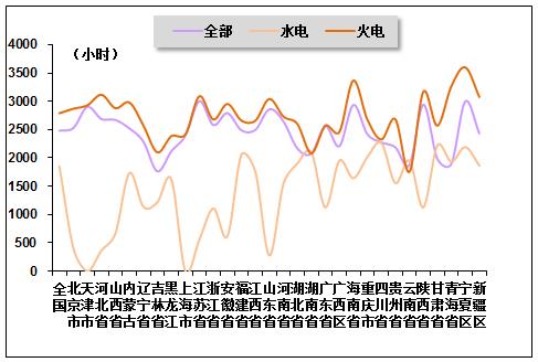 同期,全国火电设备平均利用小时2,790小时,与上年同期相比降低55小时,降幅较1-6月份扩大29小时;宁夏、海南分别达到3,602和3,368小时,河北、江苏、新疆、山东、陕西和青海超过3,000小时;云南、湖南、吉林火电利用小时低于2,100小时,其中云南仅有1,753小时;与上年同期相比,共有20个省份火电利用小时同比下降,其中,云南、贵州、重庆下降幅度分别为427小时、432小时和456小时。