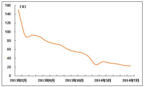 2013年2月-2014年7月电力、热力生产和供应业利润增长变化趋势
