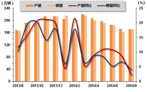 2013年8月-2014年8月汽车产销走势图