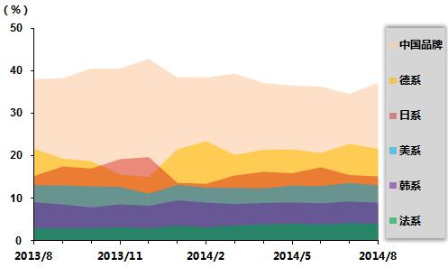 2013年8月-2014年8月乘用车分系列市场份额情况表