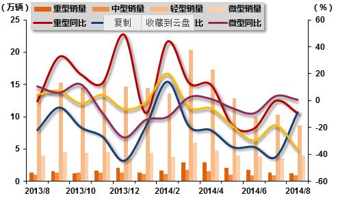 2013年8月-2014年8月货车分车型销售走势图