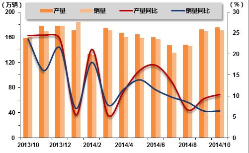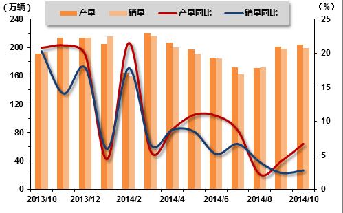 2013年10月-2014年10月汽车产销走势图
