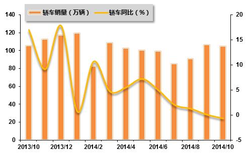 2013年10月-2014年10月基本型乘用车(轿车)销售走势图