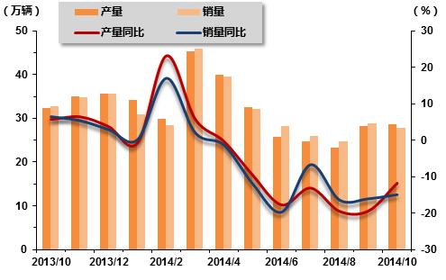 2013年10月-2014年10月商用车产销走势图