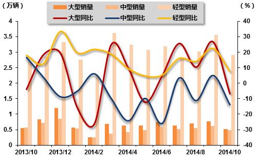 2013年10月-2014年10月货车分车型销售走势图