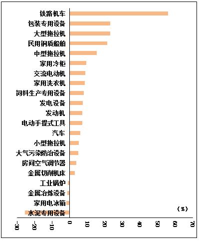 从11月耗钢产品产出情况看,监测的21种耗钢产品中有11种产品产量同比下降,其中,水泥专用设备下降幅度最大,下降了22.3%,其次是小型拖拉机,同比下降15.2%,家用冷柜下降14.2%,工业锅炉下降9.3%。10种月产量同比增长的产品中有2种产品产量同比增幅在10%以上,其中,大型拖拉机同比增幅最大,为28.4%;其次是民用钢质船舶,同比增长19.5%。从11月份环比情况来看,有17种产品呈现环比增长,其中增幅最高的是铁路机车,增长56%,包装专用设备增长23.2%,大型拖拉机增长23.1%;环比下降的产品有4种,降幅最大的是水泥专用设备,下降25.5%;其次是家用电冰箱,下降1.9%;金属冶炼设备下降1.4%。整体来看,11月份耗钢产品多数呈现环比增长态势,而同比增长各半,钢铁行业需求较上月有所回升。