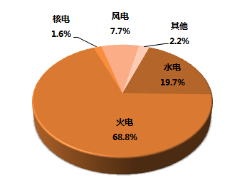 2015年1-6月份,电源结构继续优化,与上年同期相比,清洁能源发电量占比持续提升,火电发电量占比则继续下降。国家统计局数据显示,2015年1-6月份,水电、核电、风电发电量分别占全部发电量的比重为15.8%、2.9%和3.7%,与上年同期相比分别提高1.6个百分点、0.7个百分点和0.7个百分点;同期,火电发电量占全部发电量的比重为77.7%,与上年同期相比下降2.9个百分点。