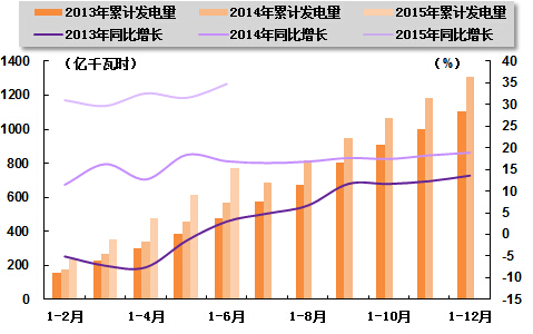 另外,2015年1-6月份,全国核电设备平均利用小时3,456小时,与上年同期相比上升27小时。全国风电设备平均利用小时1,002小时,与上年同期相比上升16小时。