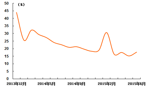 图17 2013年12月-2015年6月电力、热力生产和供应业利润增长变化趋势