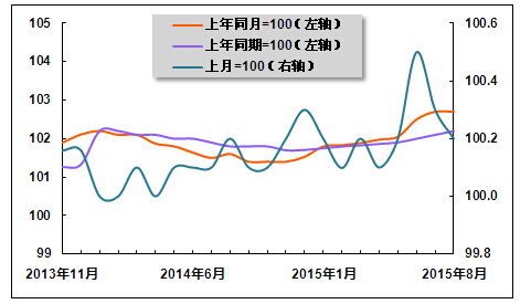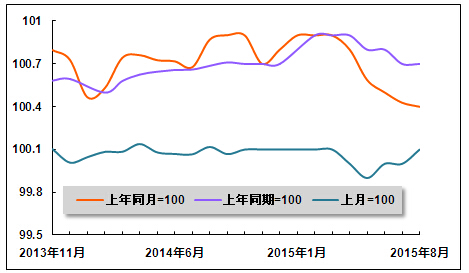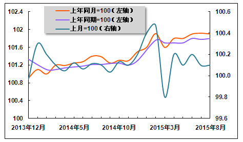 图 16 2013年12月-2015年8月医疗保健和个人用品价格指数走势
