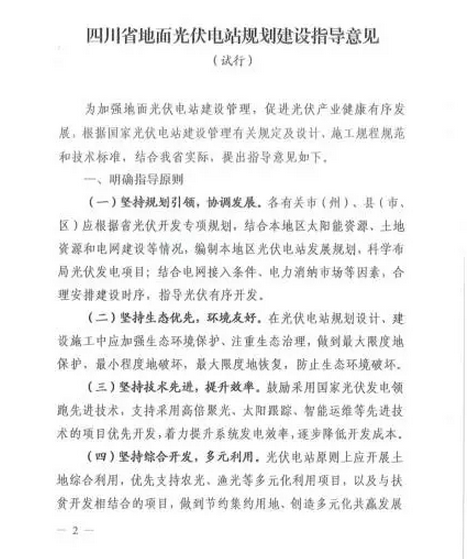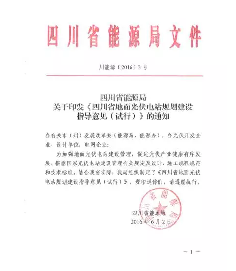 四川省能源局关于印发《四川省地面光伏电站规划建设指导意见(试行)》的通知