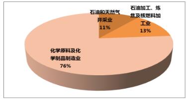 从投资结构上看,油气开采业、石油加工、炼焦及核燃料加工业及化学原料及化学制品制造业这三大行业占石化行业整体投资额的比重分别为11.0%、13.0%和76.0%;占全国固定资产投资的比重分别为0.3%、0.4%和2.1%。
