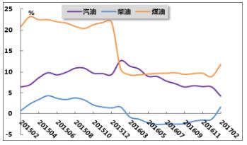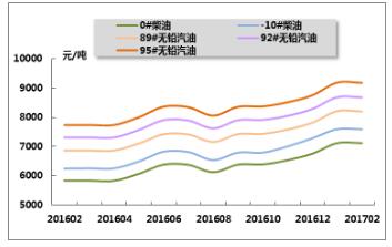 图11 2016年2月-2017年2月中国主要成品油月平均价格