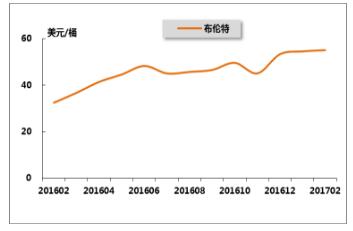 图10 2016年2月-2017年2月布伦特原油月平均价格走势