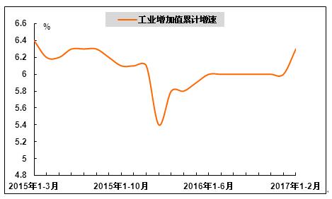 图5 2015年3月-2017年2月规模以上工业增加值累计增速走势