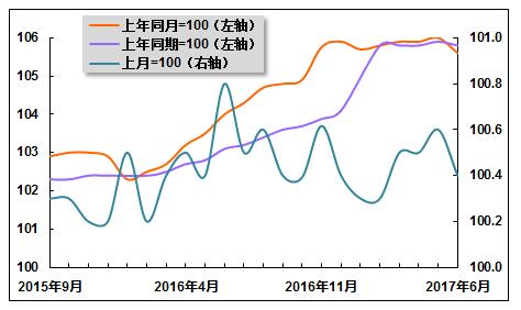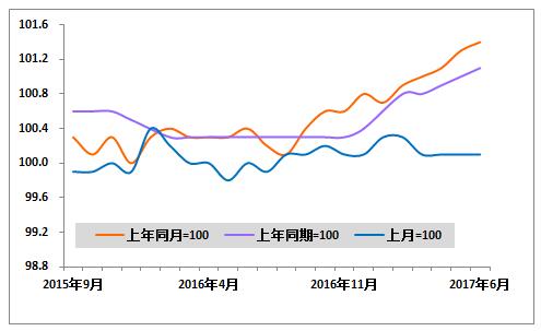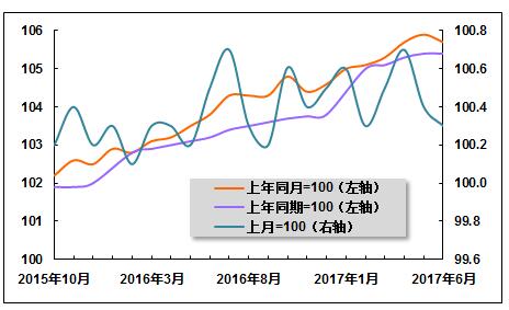 图 14 2015年10月-2017年6月医疗保健和个人用品价格指数走势