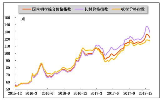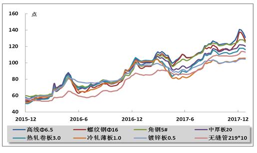 图10 2015年12月-2017年12月主要品种钢材价格指数走势