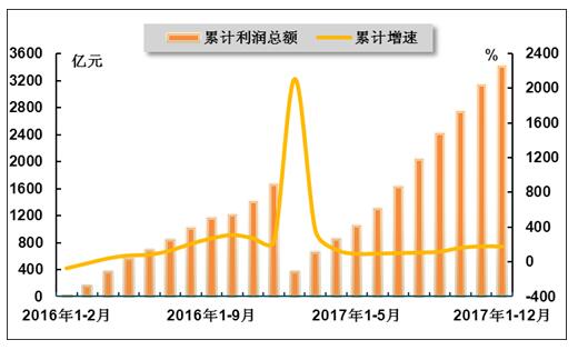 图14 2016年2月-2017年12月钢铁行业累计利润及增速走势